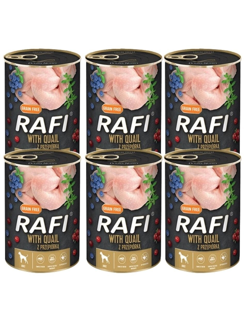 mäso a výrobky živočíšneho pôvodu 65 % (prepeličie mäso 4 %), ovocie (čučoriedky 2 %, brusnice 2 %), minerálne látky, oleje a tuky (ľanový olej 0,2 %), sušený tymián 0,01 %.