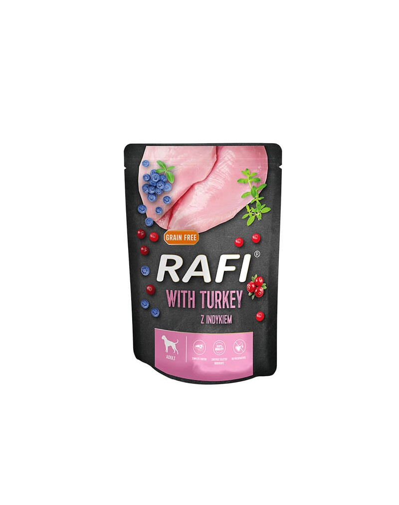 Krmivo s vysokým obsahom morčacieho mäsa je zdrojom bielkovín vysokej biologickej kvality Okrem toho prítomnosť morčacích sŕdc v krmive ho spestruje metionínom, vitamínmi rozpustnými v tukoch a minerálnymi látkami. Ostatné suroviny živočíšneho pôvodu zabezpečujú vysokú stráviteľnosť všetkých živín a navyše poskytujú tuk s veľmi hodnotným zložením mastných kyselín. Vďaka prítomnosti mastných kyselín zo skupiny n-6 v morčacom tuku je toto krmivo užitočné v každodennej strave psa na udržanie normálnej funkcie kože a vzhľadu srsti. Prídavok ľanového oleja vyrovnáva pomer polynenasýtených mastných kyselín zo skupiny n-3 a n-6 a zaručuje udržanie správneho stavu celého organizmu. Výber surovín a tepelné spracovanie zachovávajú vysokú chutnosť krmiva.