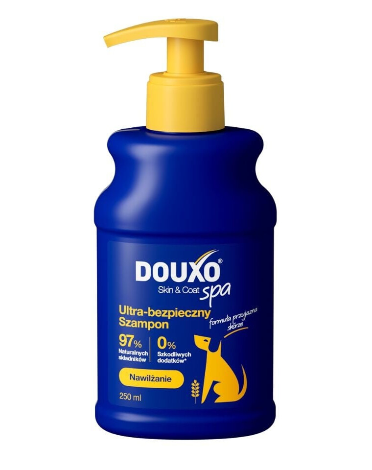 DOUXO Skin & Coat SPA – Ultra-bezpečný šampón na zvlhčenie pre psov Očisťuje a intenzívne zvlhčuje pokožku, podčiarkuje lesk srsti, zanecháva ju jemnú a lesklú. Formula priateľská k pokožke.