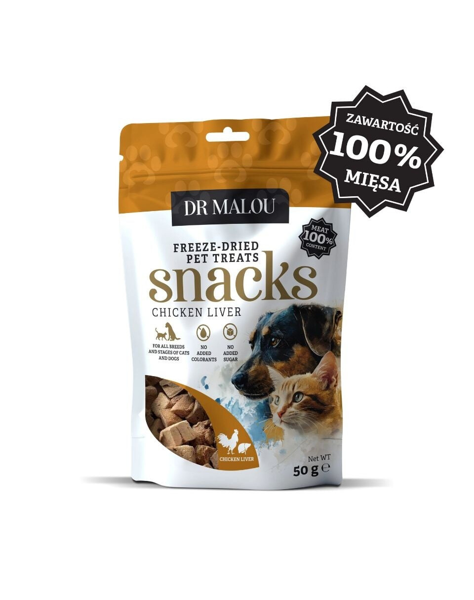 Kuracia pečeň Dr Malou – 100% liofilizovaná, prírodná doplnková strava pre psov a mačky. Bez obilnín, konzervantov a umelých prísad. Bohatá na vitamíny a minerály, vhodná pre zvieratá všetkých vekových kategórií. Vyskúšajte a presvedčte sa, ako si váš miláčik zamiluje túto výnimočnú maškrtu!