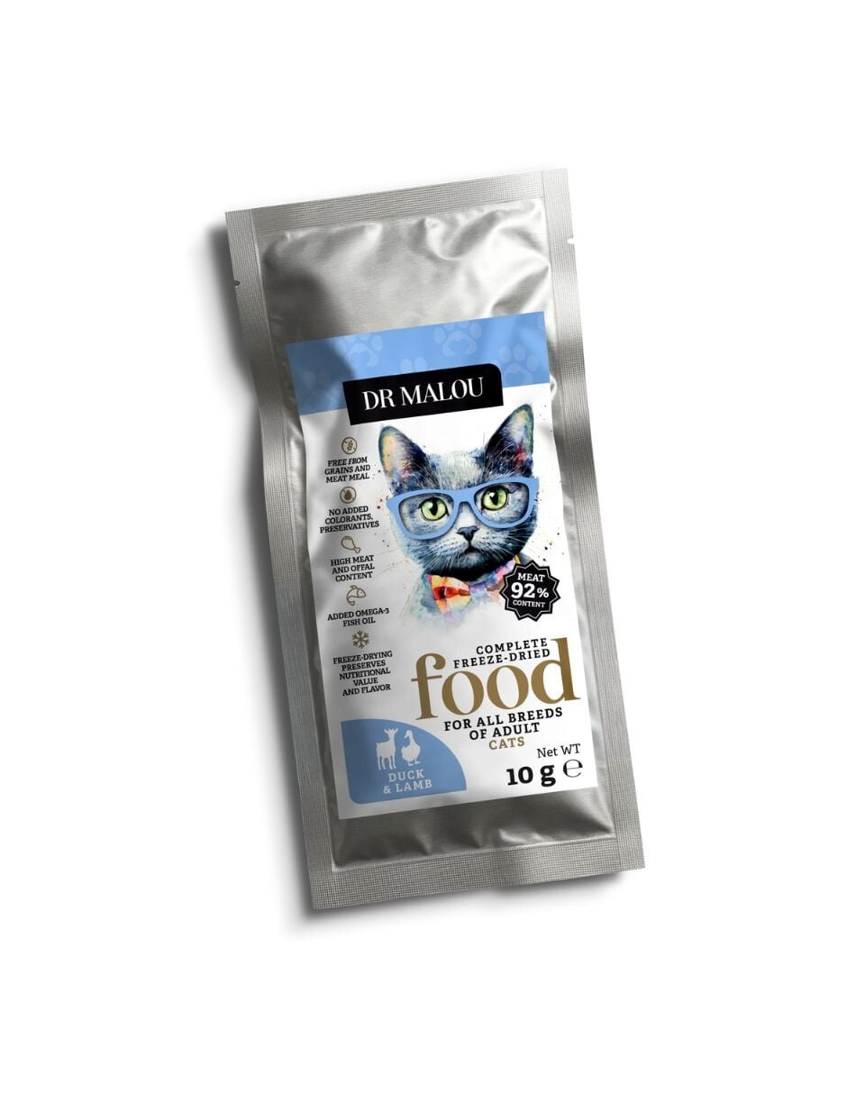 Strava Dr Malou nie je len zdravé stravovanie – je to aj každodenná porcia zábavy a aktivity pre vašu mačku! Lyofilizácia zabezpečuje zachovanie cenných nutričných hodnôt, a bohaté zloženie podporuje plnosť síl a imunitu.