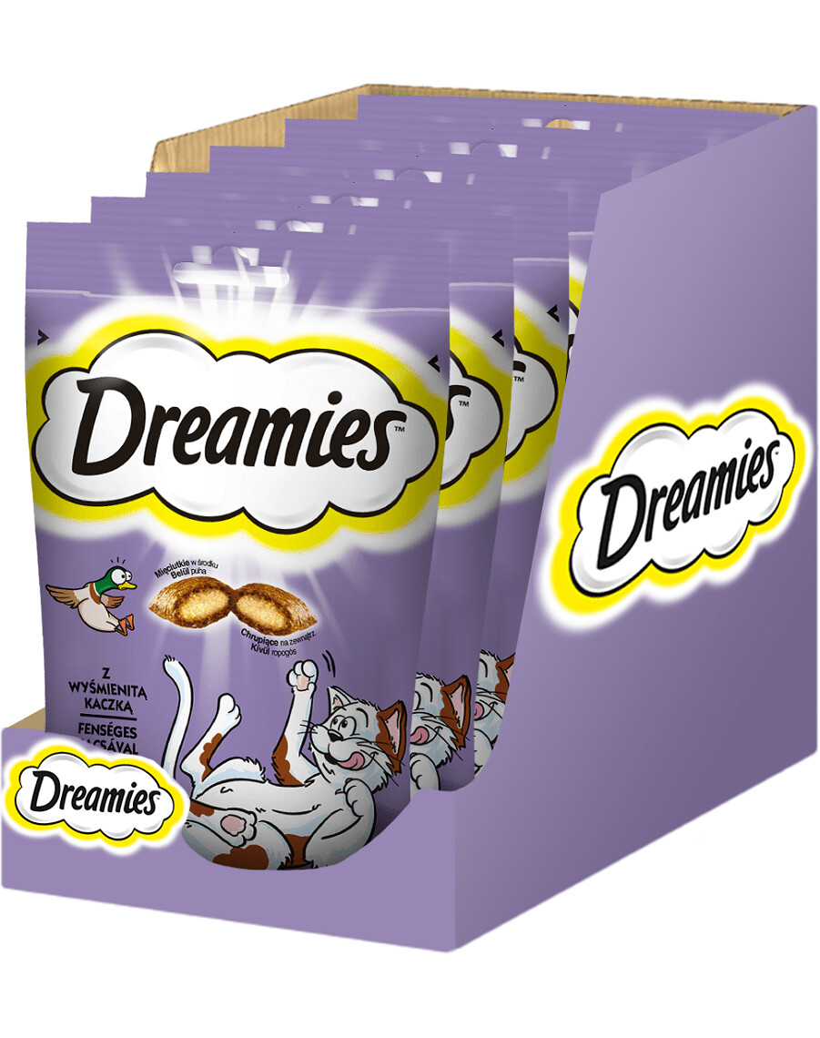 Mačky šalejú po neodolateľnej chuti mačacích maškrtiek DREAMIES™. Lahodné a chrumkavé zvonku, mäkké vo vnútri – mačky jednoducho nedokážu odolať skvelej chuti DREAMIES™. Tak len do toho, zatraste sáčkom a sledujte, ako sa k vám vaša mačka rozbehne.