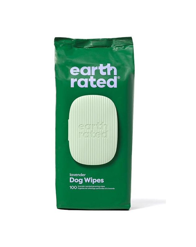 Toto balenie obsahuje 100 levanduľových obrúskov na starostlivosť o psov značky Earth Rated.