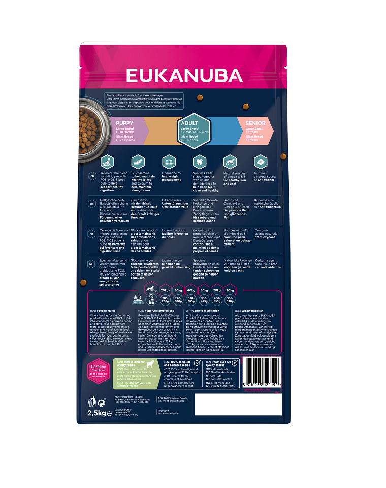 Krmivo Eukanuba je vyrobené z tých najkvalitnejších surovín poskytuje psovi príslušnú dávku energie, a mäso ktoré obsahujú dáva lahodnú chuť. Jedinečný systém Vital Health, FOS a prebiotiká chránia Vášho psa tým, že posilňuje jeho imunitný systém.