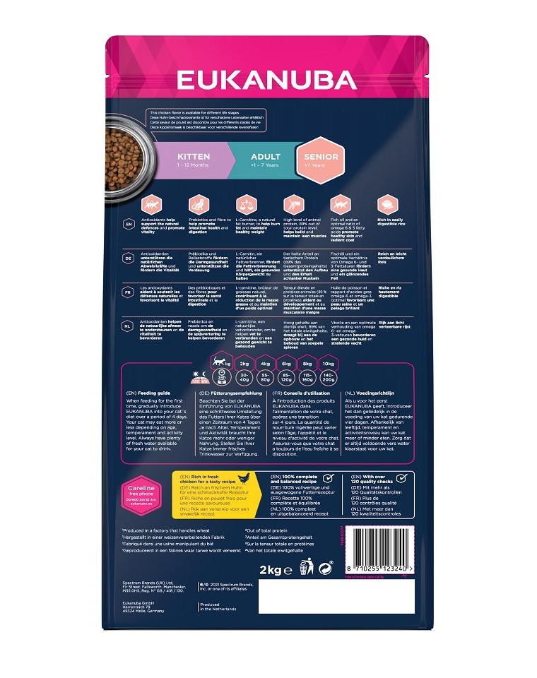 EUKANUBA TOP Condition bohaté na kuracie 7+ obsahuje 91% živočíšnych bielkovín (podiel celkových proteínov), čo umožňuje udržiavať svalovej hmoty, čo by nebolo možné s rastlinných proteínov. Toto vysoko kvalitné krmivo pomáha zachovať kľúčové funkcie a vitalitu starých mačiek. Je bohaté na pečeň obsahujúce vápnik a ďalšie dôležité minerály: podporuje a udržiava silné kosti. Dajte mačke čistú energiu: antioxidant, vitamín E, podporuje rozvoj prirodzených obranných mechanizmov a má priaznivý účinok na imunitný systém. Kým diéta s nízkym obsahom horčíka pomáha udržať močové cesty v dobrom stave, repná dužina podporuje účinnú absorpciu živín. Krmivo pre staršie mačky EUKANUBA má optimálny pomer omega-3 k omega-6 k podpore zdravia kože a srsti lesk - a zároveň umožňuje získať úplne nádherný vzhľad. Okrem toho chrumkavé kúsky jedla tiež pomáhajú udržiavať zuby mačiek zdravé. EUKANUBA krmivo pre mačky je vyrobený z vysoko kvalitných surovín a je 100% kompletné a vyvážené, takže pomáha vaše mačka, aby si perfektnú náladu a vyzerať skvele - bez ohľadu na jeho vek.