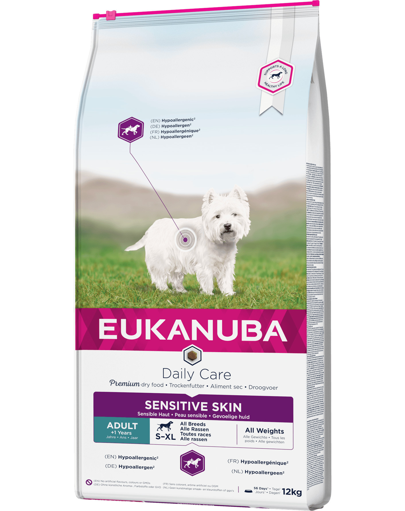 Suché krmivo pre dospelých psov s veľmi citlivou, suchú a šupinatou kožou, podráždenie pokožky spôsobuje svrbenie. Krmivo podporuje prirodzené liečebné vlastnosti tela a zdravie pokožky.