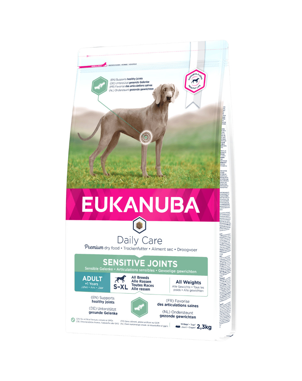EUKANUBA Daily Care Sensitive Joints je krmivo pre psov trpiacich kĺbovými problémami. Bol vytvorený na podporu mobility psov a poskytovanie vyvážených, zdravých zložiek.