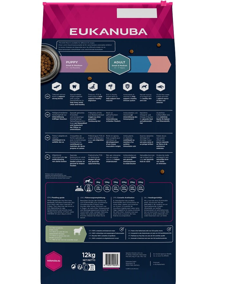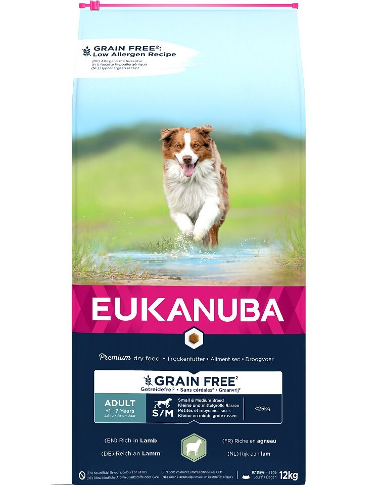 EUKANUBA Grain Free S/M Adult Jahňacie mäso 12 kg pre dospelých malých a stredne veľkých psov