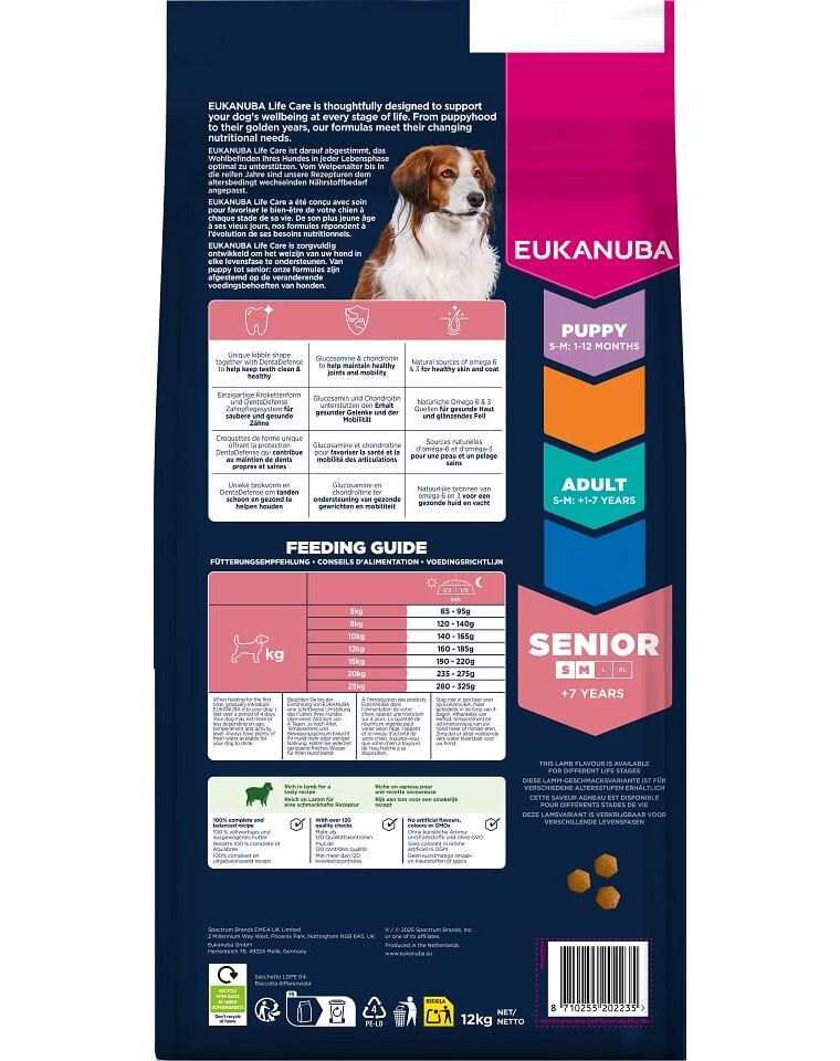 EUKANUBA Life Care je prémiové krmivo vyvinuté na základe vedeckého výskumu, ktoré reaguje na meniace sa potreby psov v každom veku. Toto krmivo bolo vytvorené s ohľadom na starších psov malých a stredných plemien (nad 7 rokov), poskytujúc ľahko stráviteľnú ryžu a kvalitnú jahňacinu – ideálne aj pre psov s citlivým žalúdkom.