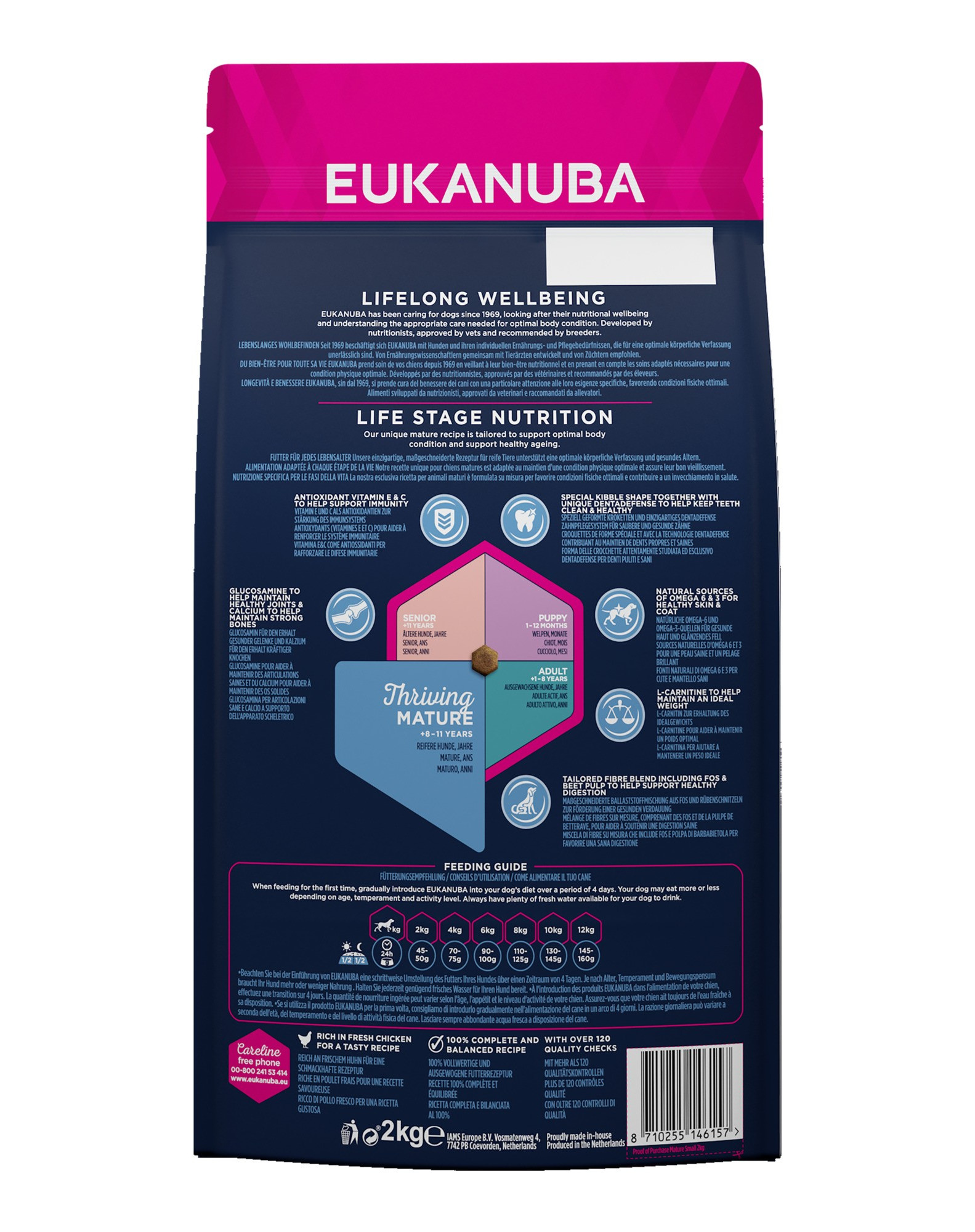 Zloženie: Čerstvé kuracie (18%), sušené kuracie a morčacie 18% (kura 11%), kukurica, pšenica, ovos, jačmeň, hydinový tuk, cirok, kuracie šťava, sušená repná dužina (2,5%), minerály (vrátane hexametafosforečnanu sodného (0,34%)), rybia múčka, kukuričná krupica, sušené celé vajcia, fruktooligosacharidy (0,25%), sušené pivovarské kvasnice, glukosamín (z živočíšne tkaniva) (0,04%).