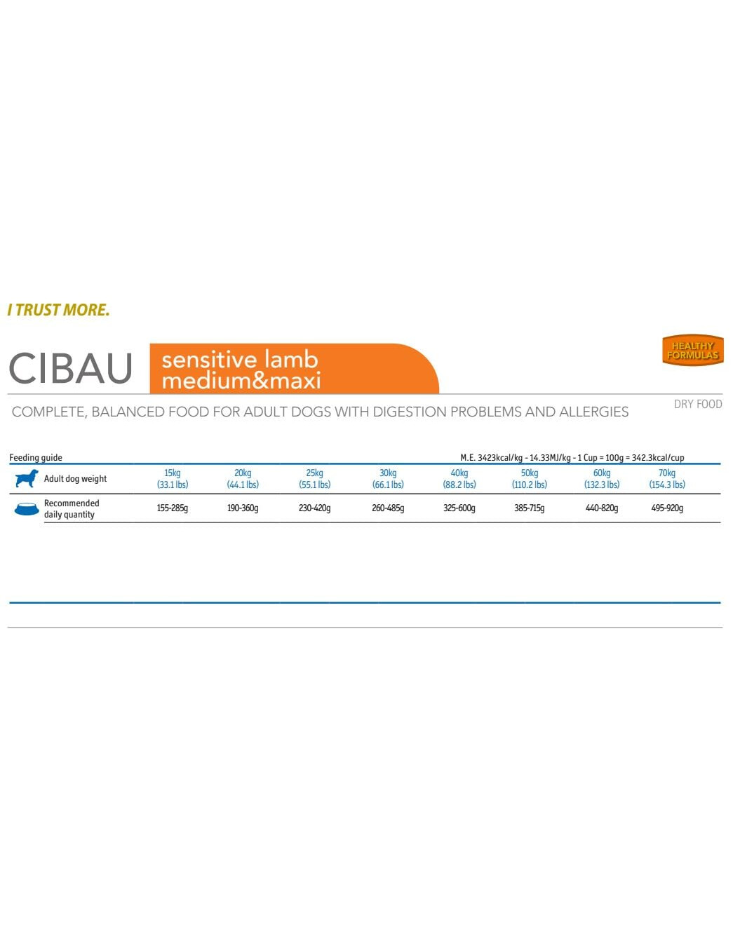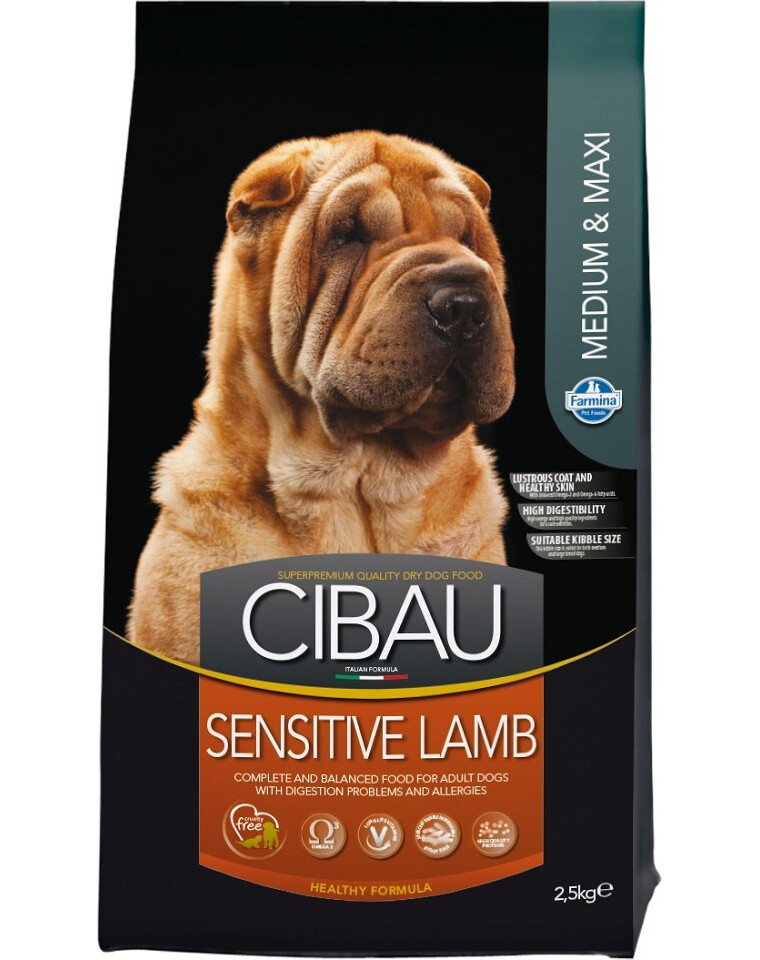 Cibau Lamb & Rice Kompletné, vyvážené a plnohodnotné superprémiové krmivo pre dospelé psy s tráviacimi problémami a psy trpiace alergiami. Vhodné pre psy s citlivým tráviacim traktom.