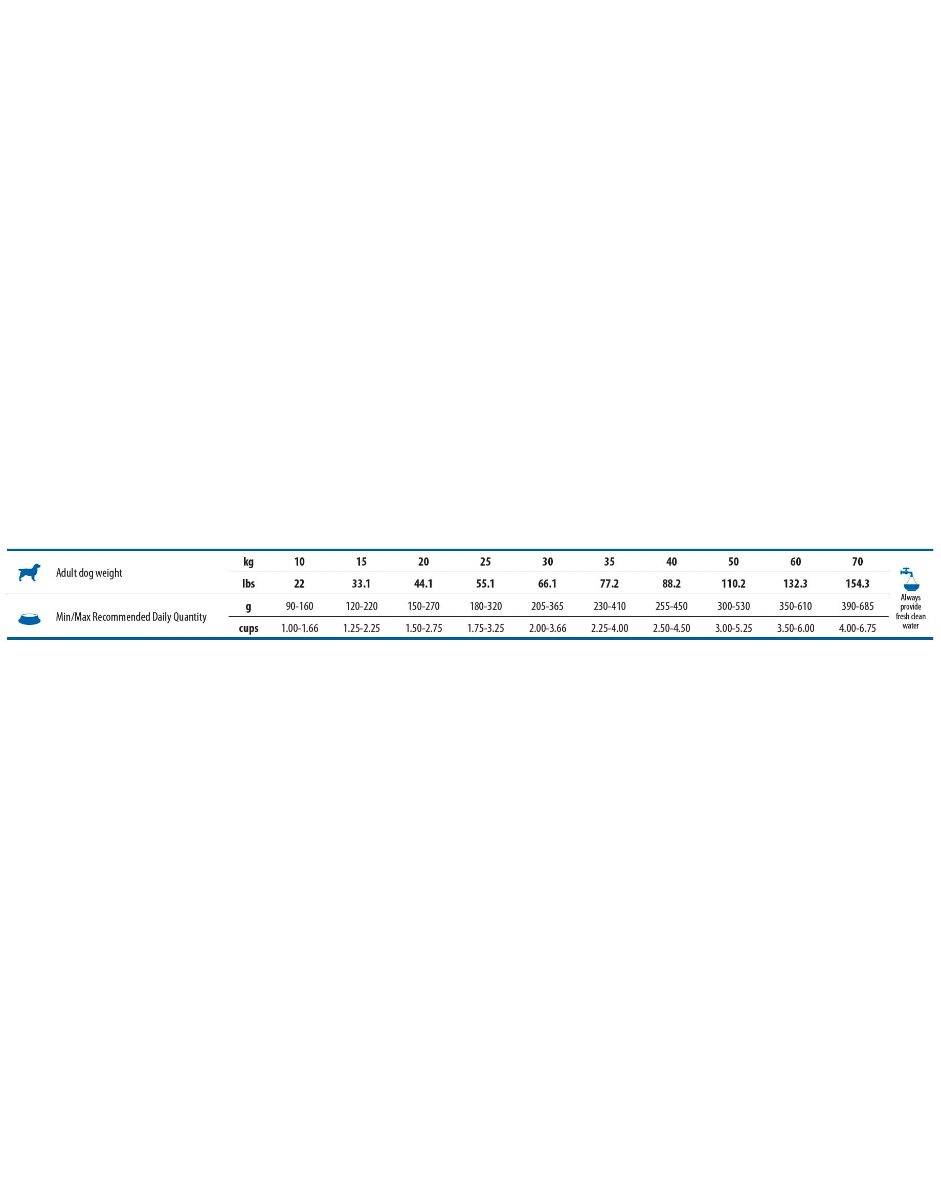 Uvedené dávkovanie je orientačné a je potrebné ho prispôsobiť svojmu zvieraťu individuálne, pričom treba zohľadniť úroveň aktivity a zdravotný stav zvieraťa.