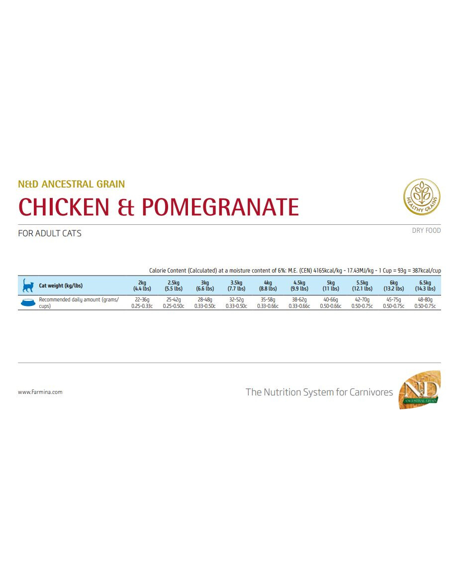 Vykostené kuracie mäso (24 %), sušené kuracie bielkoviny (24 %), špalda (10 %), ovos (ovsené vločky) (10 %), kurací tuk, sušené celé vajce, sleď, sušené sleďové bielkoviny, rybí olej (zo sleďa), sušená repná dužina, sušená mrkva, lucernová múčka, čakankový inulín, fruktooligosacharidy, kvasnicový extrakt (zdroj mannooligosacharidov), sušené plody granátového jablka (0.5 %), sušené jablko, sušený špenát, šupky a semená Psyllia (0,3 %), sušený pomaranč, sušené čučoriedky, chlorid sodný, sušené pivovarské kvasnice, kurkuma (0,2 %), extrakt z aloe vera.