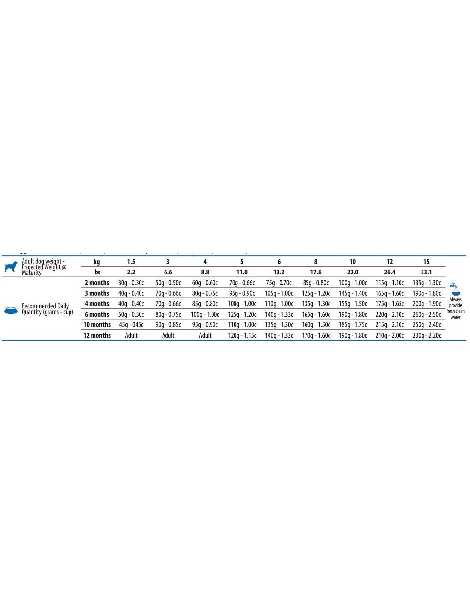 Uvedené dávkovanie je orientačné a malo by byť prispôsobené vášmu zvieraťu individuálne, pričom sa zohľadňuje úroveň aktivity a zdravotný stav zvieraťa.