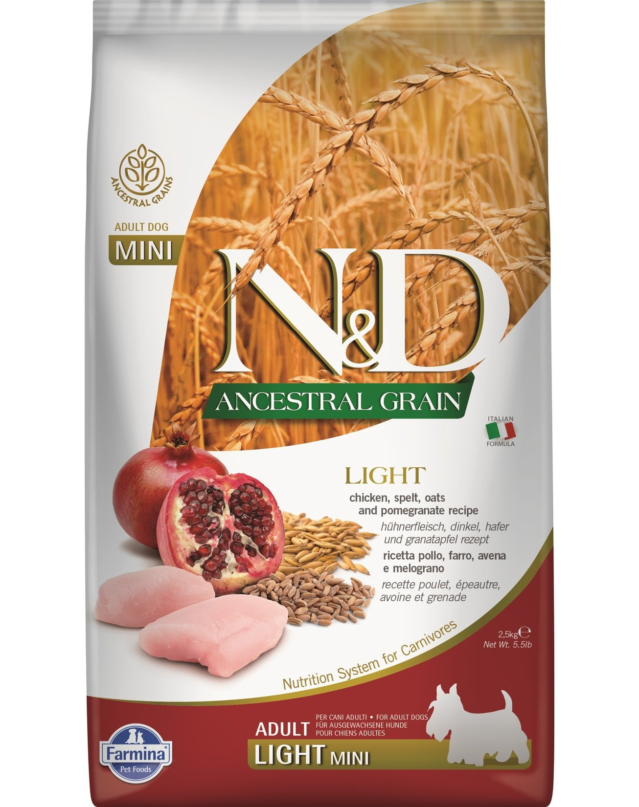 Recept obsahuje malé množstvo obilnín - tzv. Prozboz - ovos a špalda (každá časť po 10%). Hlavnou zložkou je čerstvé a sušené kurča, okrem toho obsahuje aj sleďové mäso. Celkovo poskytuje vysokú hladinu živočíšneho proteínu, ktorý podporuje správnu svalovú hmotu a dobrý stav tela. Recept je doplnený ovocím, zeleninou a bylinkami. Granátové jablko je cenným ovocím s mnohými vlastnosťami podporujúcimi zdravie. Považuje sa za ovocie, ktoré bráni rakovine buniek a má vlastnosti podporujúce činnosť srdca a mozgu.