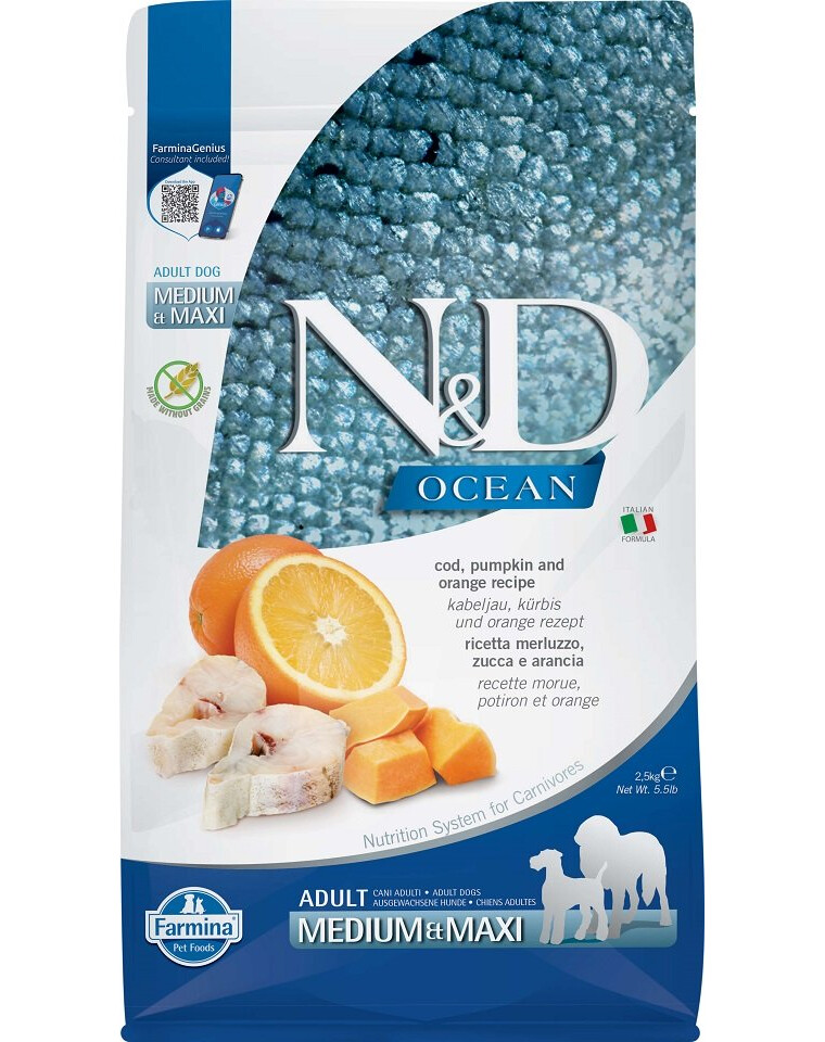 Krmivo obsahuje živočíšne bielkoviny získané iba z rýb. Čerstvé a sušené mäso z tresky tvorí až 50% z celkového receptu, čo zaručuje zdravý rast, vývoj a dobrý stav psa. Do krmiva sa pridávajú pomaranče a tekvica, ktoré úplne nahradili obilniny. Poskytujú veľké množstvo vitamínov, najmä C, vlákninu a minerály. Tekvica má veľa vitamínu A a antioxidantov, podporuje imunitný a kardiovaskulárny systém a má tiež protizápalové a antiparazitické účinky. Rybí olej je silná dávka nenasýtených mastných kyselín Omega 3 s protizápalovými vlastnosťami. Pridanie kurkumy má antioxidačné a protirakovinové vlastnosti.