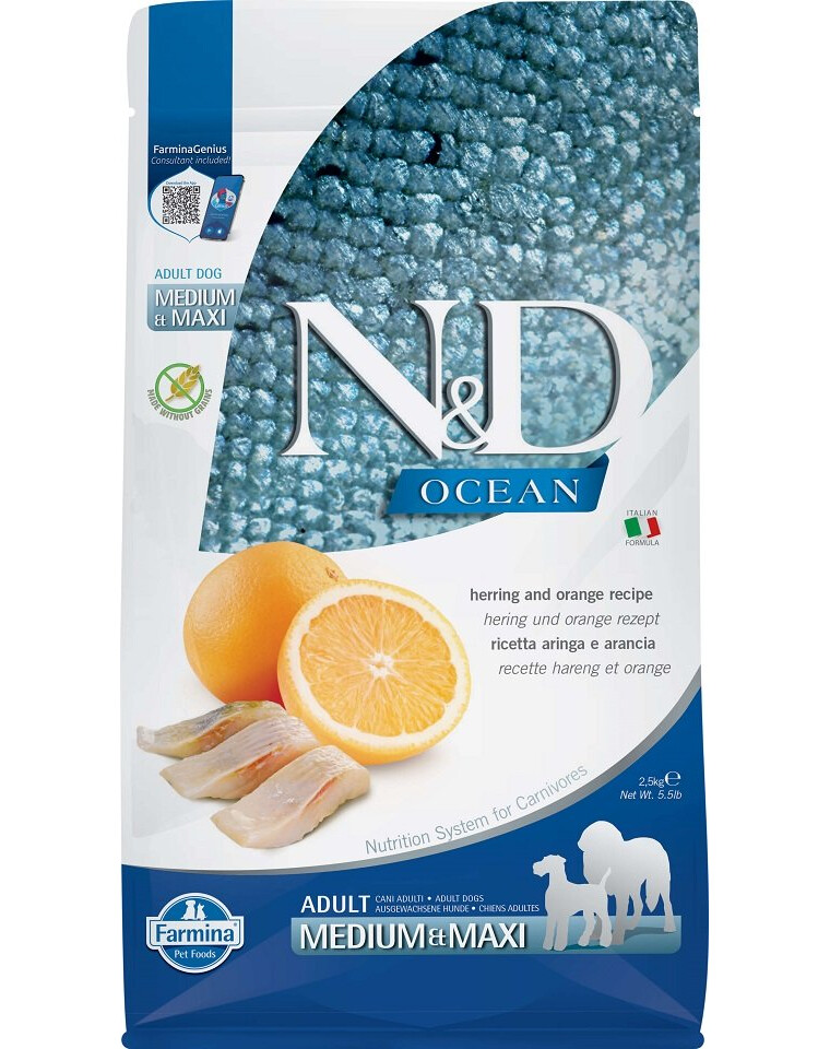Čerstvé slede (26%), sušené slede (25%), zemiaky, rybí tuk, sušené vajcia, rastlinná vláknina z hrachu, sušená mrkva, sušená lucerna, inulín, frukto-oligosacharidy, mannán-oligosacharidy, sušené pomaranče (0,5%), sušené mleté granátové jablká, sušené jablká, sušený mletý špenát, skorocel indický (0,3%), sušené mleté čierne ríbezle, sušené mleté čučoriedky, chlorid sodný, sušené pivovarské kvasnice, koreň kurkumy (0,2%), glukozamín, chondroitín sulfát, výťažok z nechtíka lekárskeho (zdroj luteínu).