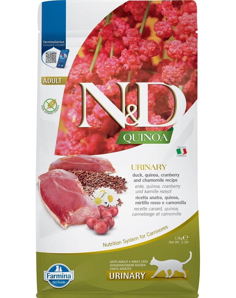 Podporuje močový systém mačiek, môže sa používať ako preventívna diéta a je vhodná aj pre mačky po ukončení veterinárnej diéty. Receptúra je založená na čerstvom a sušenom kačacom mäse, ktoré je ľahko stráviteľné a bohaté na antioxidanty. Okrem kačacieho mäsa obsahuje aj mäso zo sleďa, ktoré sa vyznačuje vysokým obsahom nenasýtených mastných kyselín. Vysoký podiel plnohodnotných živočíšnych bielkovín pomáha udržiavať zdravie a dobrú kondíciu mačky. Hlavnými doplnkami v krmive sú quinoa, brusnica a harmanček.