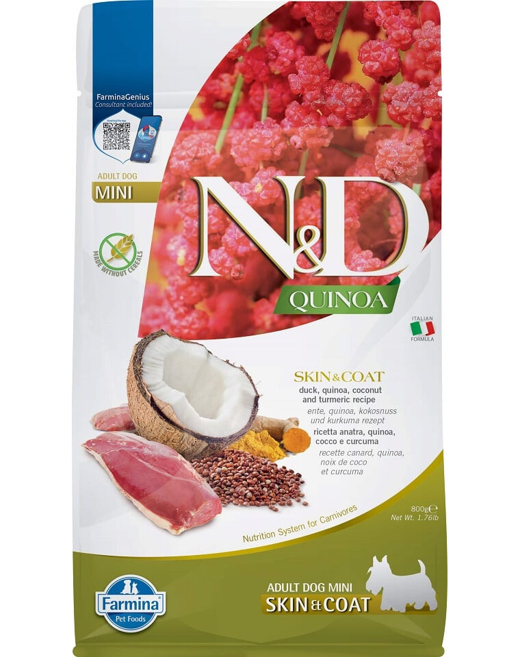 plemien. Farmina N&D Quinoa Mini Skin & Coat sa odporúča pri
