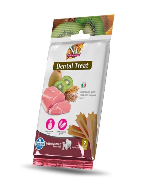 Farmina N&D Tropical Selection je dentálna maškrta pre psy stredných a veľkých plemien nad 4 mesiace, ktorý spája prírodné zložky a funkčnú podporu zdravia.