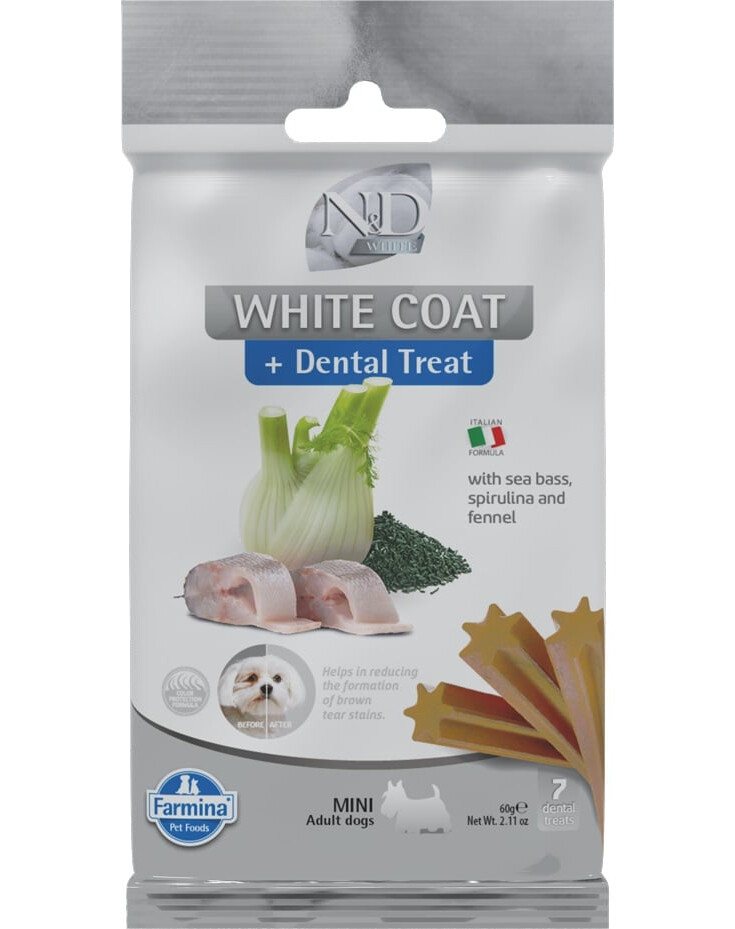 Postarajte sa o zdravie a vzhľad svojho miláčika vďaka formule N&D White, vytvorenej špeciálne na starostlivosť o bielu srsť. Táto dentálna maškrta pomáha zachovať prirodzenú krásu a lesk srsti, účinne znižuje riziko zafarbenia a podporuje udržanie jej čistoty. Vďaka monoproteínovej receptúre založenej na vysoko kvalitnom hydrolyzovanom proteíne s miernym obsahom minimalizuje riziko alergií a zápalov, čo je obzvlášť dôležité pre citlivé psy.