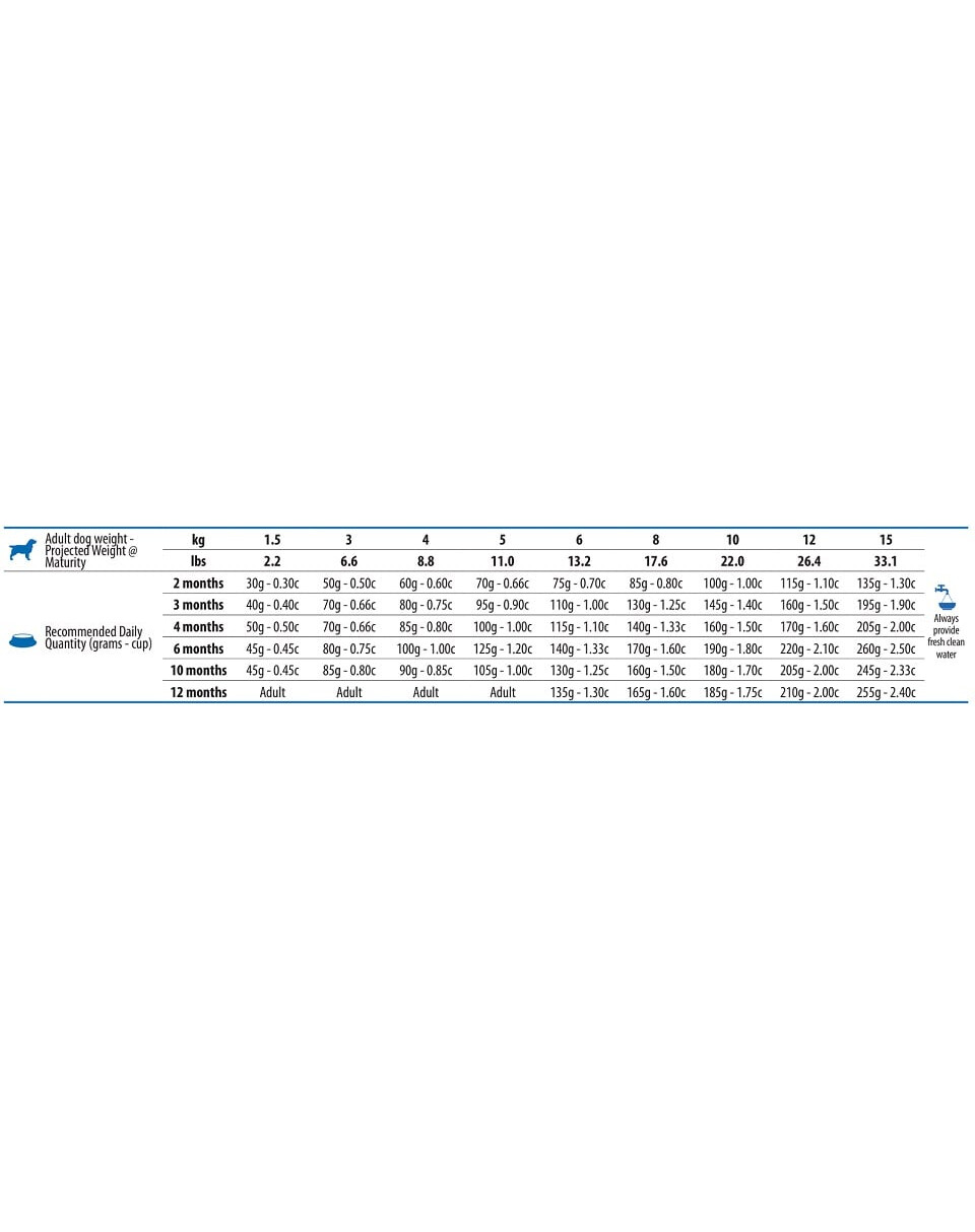 Uvedené dávkovanie je orientačné a je potrebné ho prispôsobiť svojmu zvieraťu individuálne, pričom sa zohľadňuje stupeň aktivity a zdravotný stav zvieraťa.