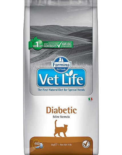 Veterinárne kompletné krmivo pre dospelé mačky trpiacich cukrovkou.