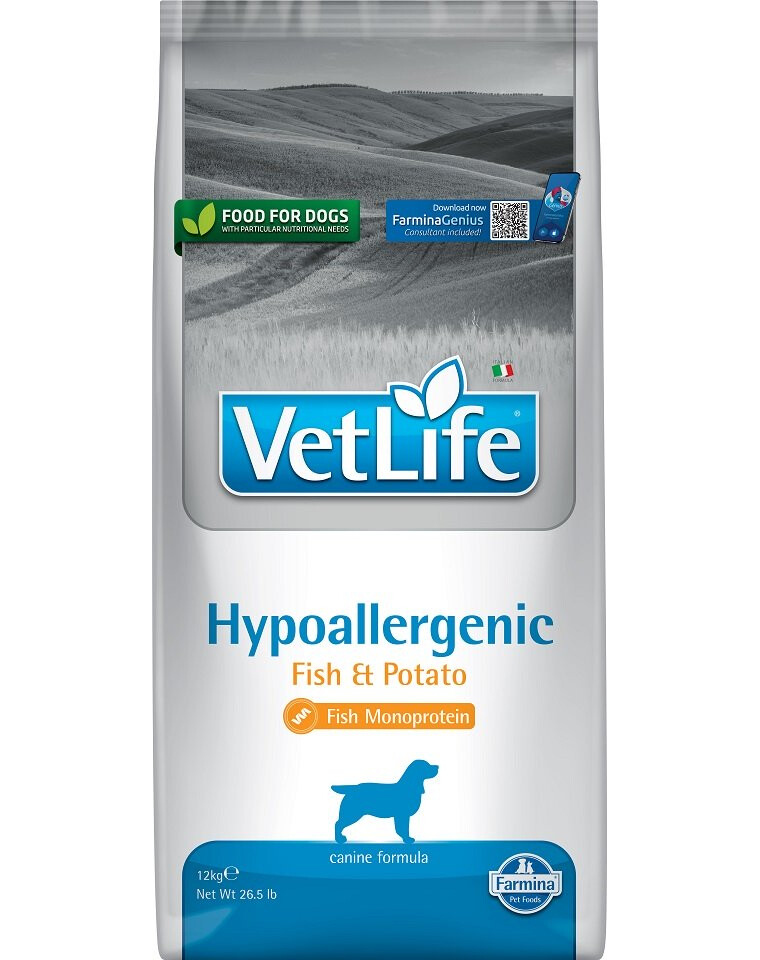 Farmina Vet Life Hypoallergenic Fish & Potato je kompletné diétne krmivo pre psov.