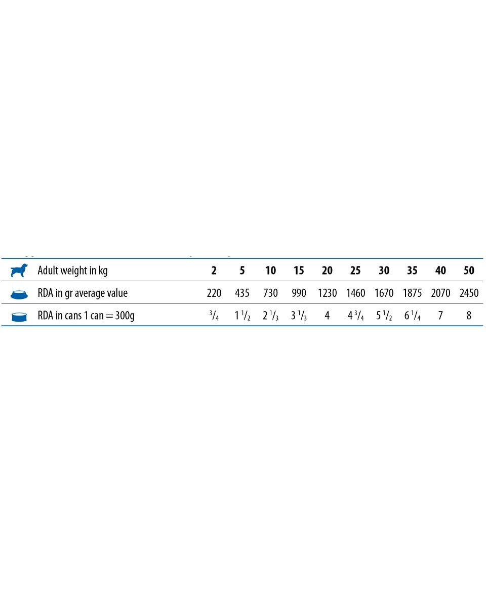 Hrubé bielkoviny 4,50 %; hrubý tuk 3,00 %; hrubá vláknina 1,20 %; hrubý popol 1,70 %; vlhkosť 80,00 %; vápnik 0,15 %; fosfor 0,12 %; sodík 0,05 %; draslík 0,15 %; horčík 0,02 %; omega-3 mastné kyseliny 0,45 %; omega-6 mastné kyseliny 1,15 %; LA 1,05 %; EPA+DHA 0,26 %; EPA 0,12 %; DHA 0,14 %.
