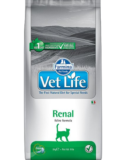 Farmina Vet Life Renal je kompletné dietetické krmivo pre mačky určené na podporu obličiek pri chronickej alebo dočasnej obličkovej nedostatočnosti. Obsahuje nízke množstvo fosforu a znížený obsah vysoko kvalitných bielkovín.