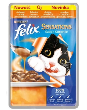FELIX Sensations Sauce Surprise morčacie v omáčke s príchuťou slaniny 100g