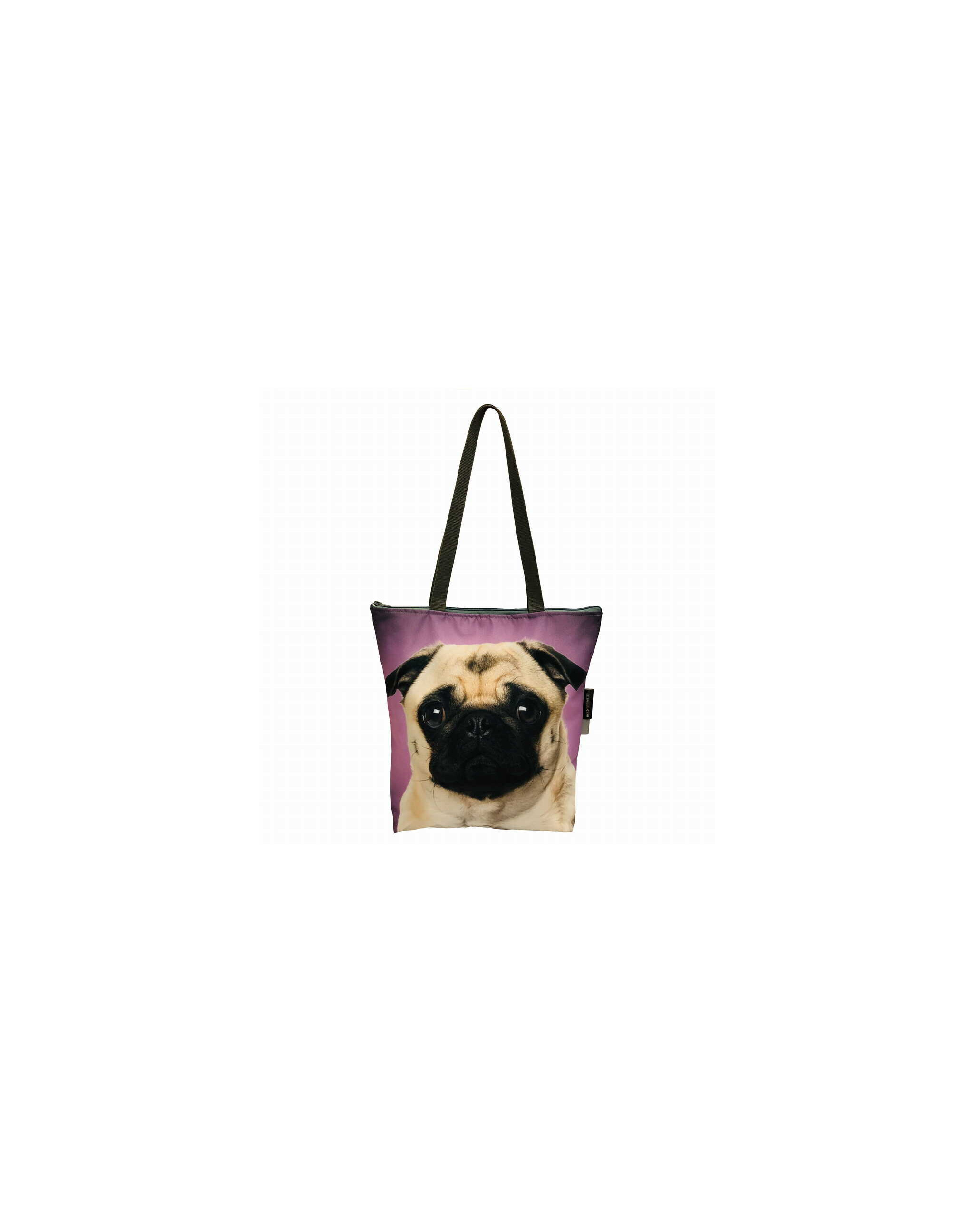 Klasická taška na zips. Vytlačené roztomilým mopslíkom.