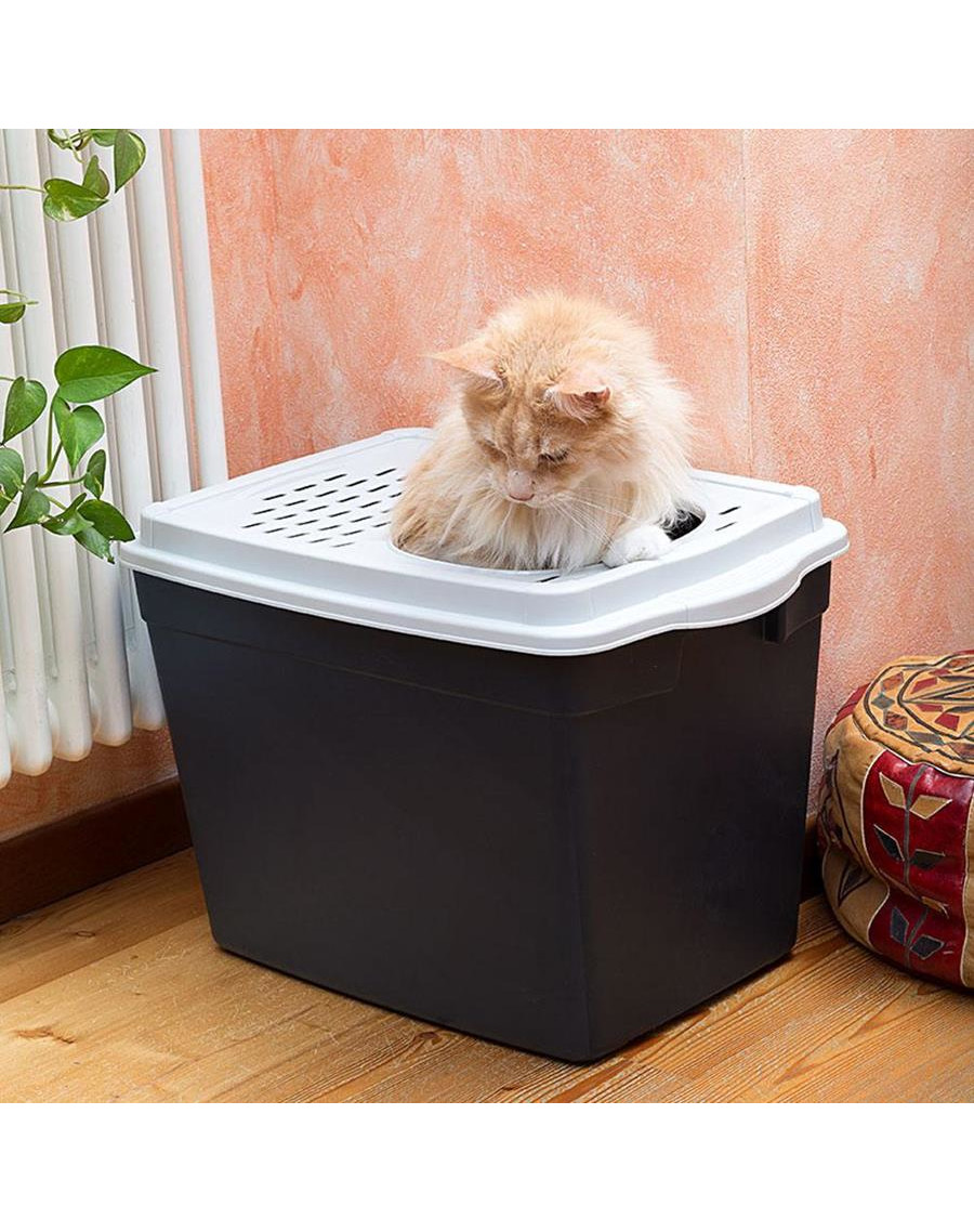 Uzavretý box na exkrementy s horným vstupom pre mačky.