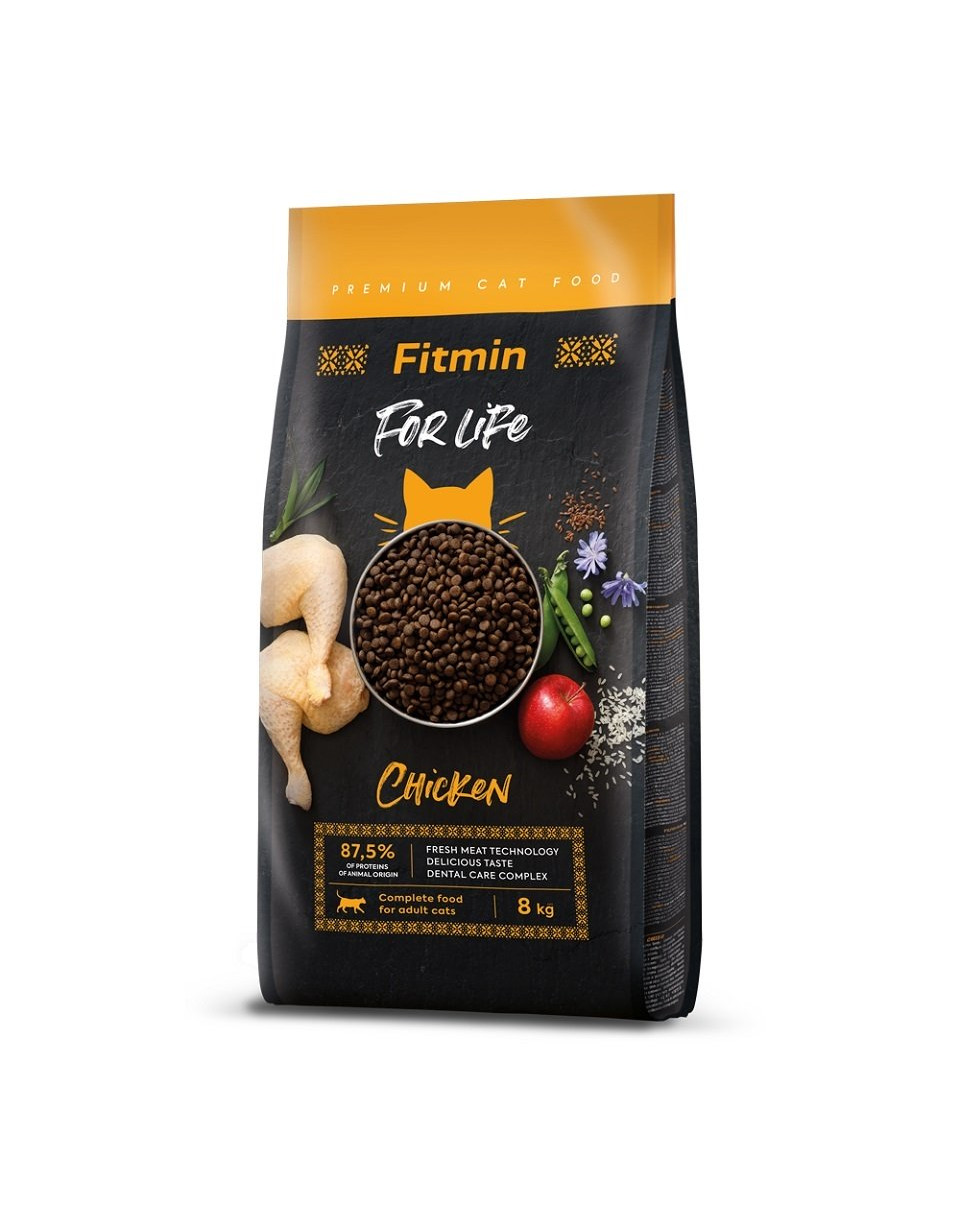 Zloženie: mäso (sušené kuracie mäso 35 %, čerstvé kuracie mäso 20 %, hydrolyzované kuracie bielkoviny 3,8 %), ryža, hydinový tuk, ovos, repná vláknina, jablkové výlisky, hrachové semená, slepačie vajcia, prírodný zdroj vlákniny, kvasnice, ľanové semeno, lososový olej 1 %, inaktivované kvasnice Saccharomyces cerevisiae (betaglukány) 0,7 %, chlorid draselný, koreň čakanky, juka 0,01 %.