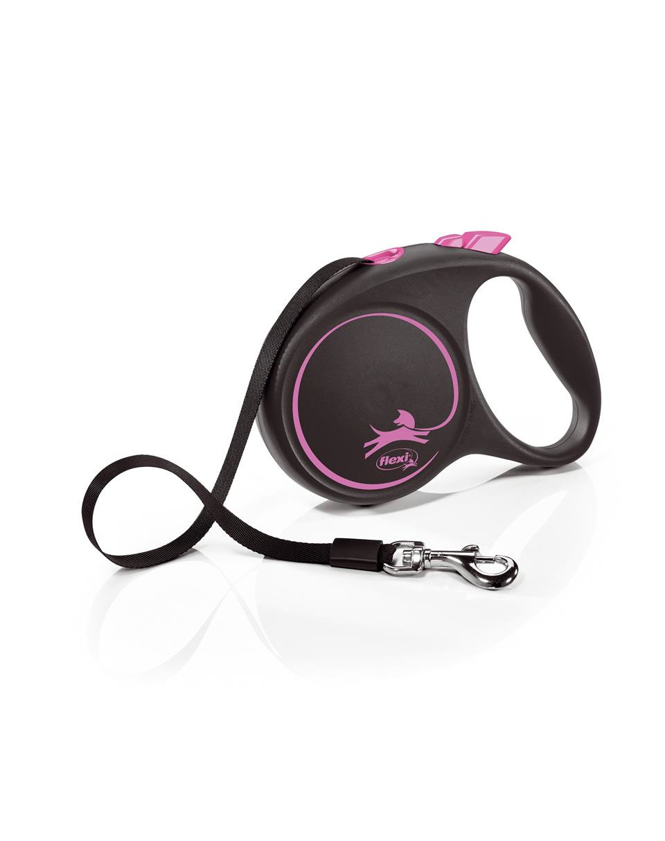 Automatické vodítko pre psa, čierne a ružové, veľkosť L, pre psy veľkých plemien s hmotnosťou do 50 kg.