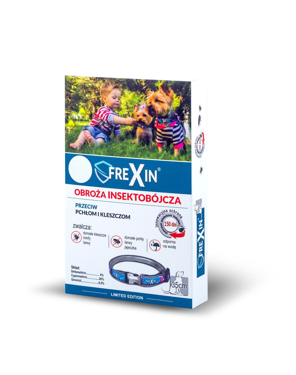 Ako fungujú obojky proti hmyzu FREXIN: Cypermetrín, deltametrín a geraniol sa pomaly a kontinuálne uvoľňujú z polymérnej matrice obojku na srsť a pokožku zvieraťa. Starostlivo zvolený podiel aktívnych látok a promótorov uvoľňovania z polymérnej matrice vedie priamo k zaisteniu najbezpečnejšej a zároveň plne efektívnej koncentrácie vo vlasoch psa. Zaisťujú plnú biologickú aktivitu počas celej doby deklarovanej účinnosti produktu. Rýchlosť uvoľňovania účinných látok počas životnosti obojku je konštantná a nezmenená od okamihu, keď je prípravok položený na krk psa.