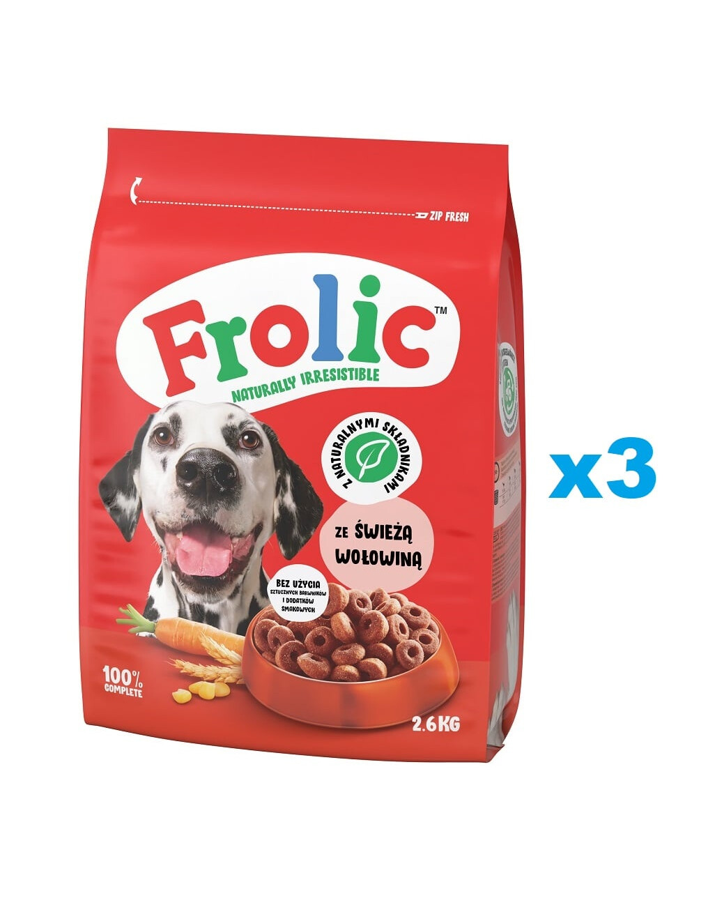 Frolic Naturally Irresistible s čerstvým hovädzím mäsom je kompletné, polomäkké krmivo pre psov vo forme mäkkých a chutných diskov. Tieto chutné sústa sú ideálne na žuvanie a hryzenie. Starostlivo vybrané zloženie obsahuje čerstvé hovädzie mäso, prírodné ingrediencie a celozrnné obilniny. Receptúra neobsahuje cukor a palmový olej. Keď budete svojmu miláčikovi dávať krmivo Frolic Naturally Irresistible, môžete si byť istí, že ho nikdy neomrzí. Je to neodolateľná chuť!