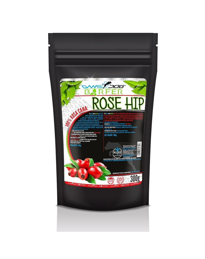 Doplnok stravy z ruže šípkovej pre psov s BARF diétou, pri nutričných deficitoch a s oslabenou imunitou.