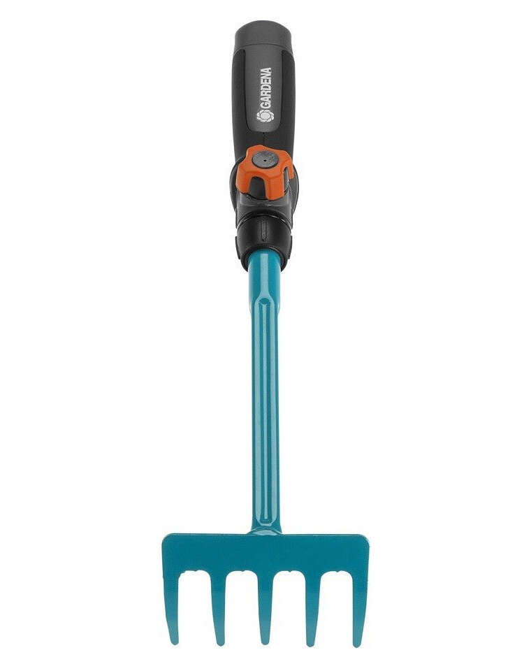 Hráble z radu GARDENA combisystem umožňujú ľahké obrábanie, kyprenie a zarovnávanie pôdy. Vďaka vymeniteľným nástrojom poskytuje GARDENA combisystem flexibilitu pri používaní. Tieto hrable sú kompatibilné so všetkými násadami z radu GARDENA combisystem a možno ich ľahko pripevniť k násade. Ak chcete pracovať pohodlne a bez ohýbania, jednoducho odoberte násadu a nahraďte ju násadou kombinovaného systému. Predlžovacia násada Combisystem (č. výr. 8900-20) je ideálna na predĺženie ručného náradia. Bezpečné spojenie medzi hrabľami a násadou zaisťuje pohodlnú prácu v každej situácii. Ergonomicky tvarovaná rukoväť s mäkkými komponentmi zvyšuje pohodlie používateľa a vďaka zaoblenému tvaru zabraňuje skĺznutiu náradia. Hrable so šírkou 8,5 cm sú vyrobené z kvalitnej ocele. Povrchová úprava z termosetového plastu zaručuje dlhú životnosť výrobku. Na úsporu miesta na uloženie hrablí možno použiť závesný systém combisystem Flex Tool Hanger.