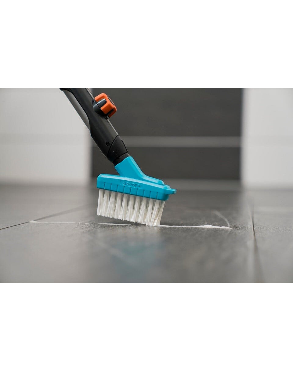 Plastová kefa na škáryGARDENA Combisystem je ideálna na jednoduché čistenie škár a medzier medzi dlaždicami domu a terasy a umožňuje flexibilné použitie vďaka vymeniteľným nástrojom. Kovová kefa na škáry je kompatibilná so všetkými násadami GARDENA Combisystem a možno ju ľahko pripevniť k násade. GARDENA odporúča násady s dĺžkou 130 alebo 150 cm v závislosti od pracovných podmienok a výšky používateľa. Pevné spojenie medzi kefou a násadou zaisťuje pohodlnú prácu v každej situácii. Polypropylénové štetiny zabezpečujú optimálne výsledky a efektivitu práce. Škrabka dokáže odstrániť odolné nečistoty. Stabilná štetka na maltu je vyrobená z kvalitného plastu a je veľmi odolná. Na úsporu miesta pri skladovaní kefy s kĺbom K možno použiť stojan na náradie Combisystem Flex.