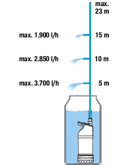 Telo s priemerom 149 mm a pripojovacím závitom sú vyrobené z masívnej nehrdzavejúcej ocele. Čerpadlo na dažďovú vodu má kapacitu 4700 l / h a poskytuje tlak 2,3 baru.