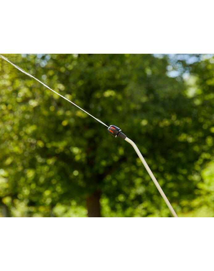 Teleskopická násypka na postrek uľahčuje prácu, pretože keď je rozložená, zvyšuje sa dosah postrekovača, čo vám umožní dostať sa do najvzdialenejších častí stromov.