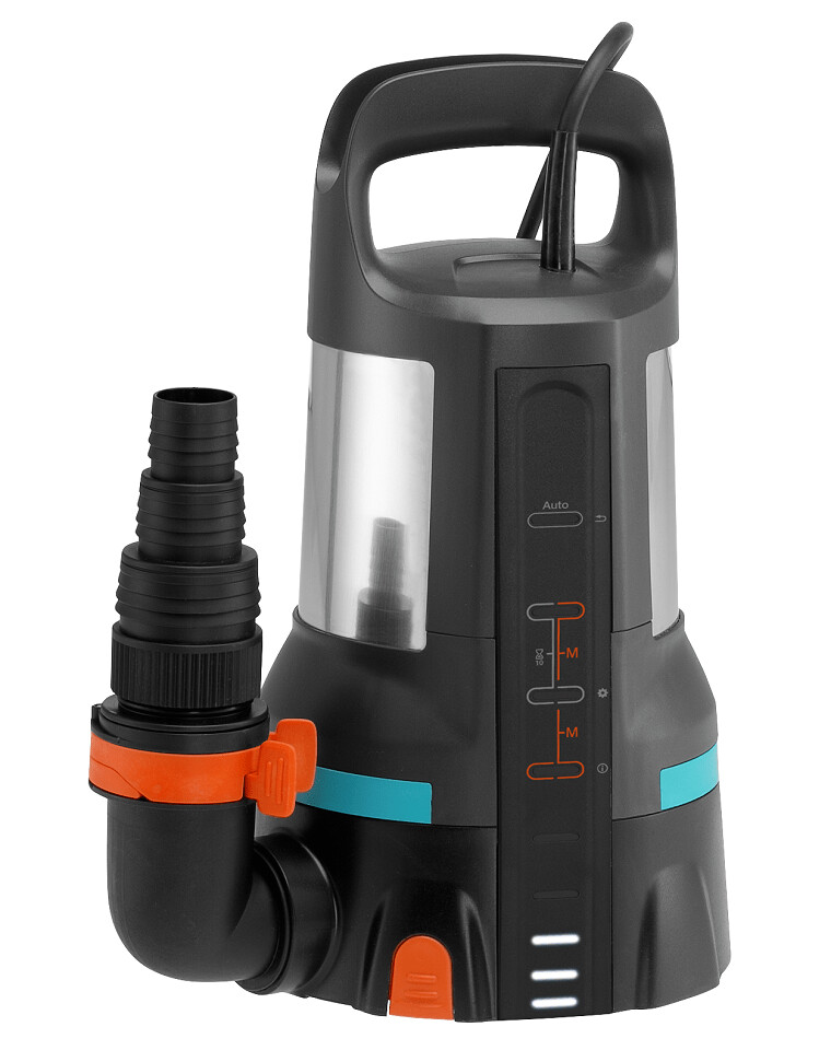 Inovatívne ponorné čerpadlo na čistiacu vodu GARDENA 17000 s funkciou Aquasensor má výkon 750 W a dokáže prečerpať až 17 000 litrov vody za hodinu.