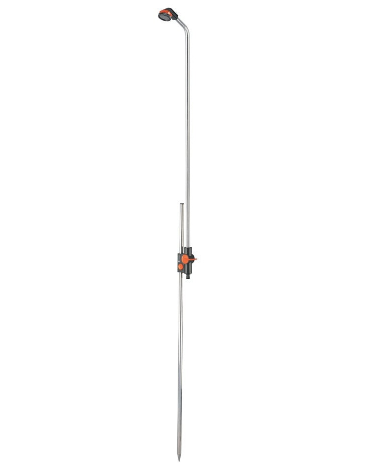 Voľne stojaca záhradná sprcha GARDENA poskytuje osviežujúci pocit počas horúcich dní. Pomocou hrotov môžete záhradnú sprchu ľahko umiestniť priamo na trávnik alebo na stojan na záhradný slnečník. Plynule nastaviteľná výška pomocou tlačidiel zaručuje, že sa ručná sprcha dokonale prispôsobí akejkoľvek výške. Regulačné a uzatváracie ventily umožňujú regulovať prietok a vzor vody. Jemný prúd vody z veľkej sprchovej hlavice zaručuje príjemné osvieženie.