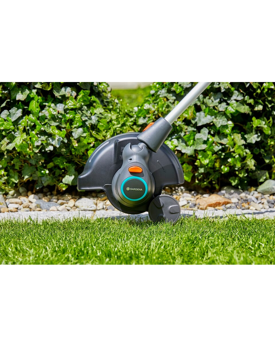 S vyžínačom okrajov trávnika môžete strihať vertikálne, aby ste presne vymedzili okraje ciest a záhonov a pozdĺž plotov.