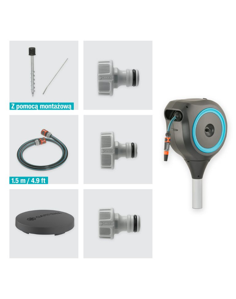 balení je pružná pripojovacia hadica, postrekovač a montážny materiál. Hadicový
