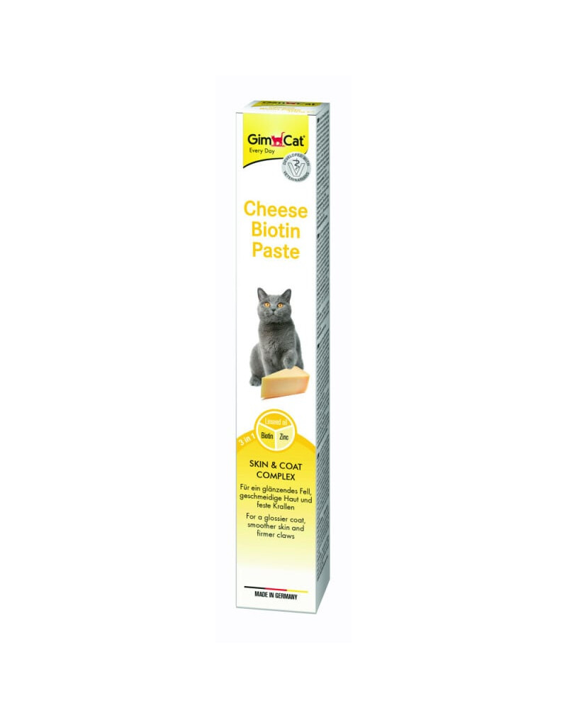 GIMCAT Every Day Cheese Biotine Paste je doplnkové krmivo pre mačky zlepšujúce kvalitu srsti.
