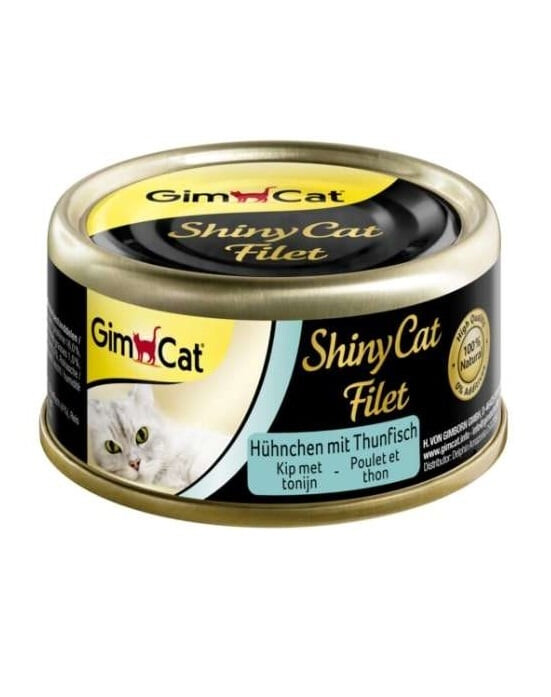 GimCat ShinyCat Filet sú lahodné kúsky mäsa varené vo vývare, ktorý zachováva dôležité nutričné hodnoty. Vysoký obsah bielkovín posilňuje imunitný systém vašej mačky a celkovo chráni jej organizmus. Rozmaznávajte svojho domáceho miláčika touto neuveriteľne lahodnou pochúťkou, ktorá je k dispozícii v štyroch príchutiach. Vďaka nízkemu obsahu tuku (2 %) je toto krmivo vhodné aj pre mačky s nadváhou.