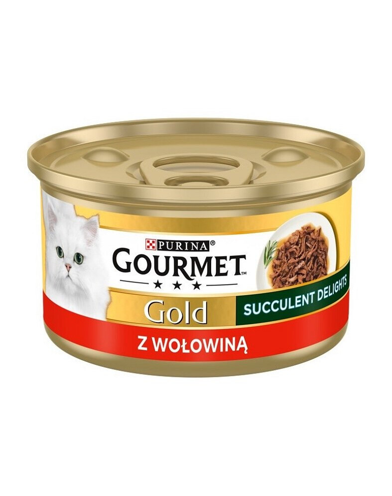 SpoločnosťGOURMET Gold vytvorila Succulent Delights: lahodný produkt vyrobený podľa šťavnatej, pomaly varenej receptúry so šťavnatými kúskami, ktoré potešia vašu mačku.