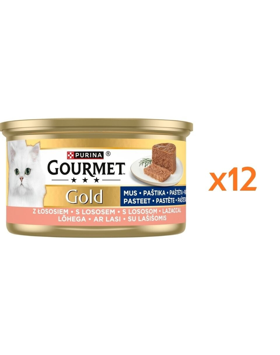 GOURMET Gold Mus s lososom je kompletná mokrá strava pre dospelé mačky, ktorá sa vyznačuje jemnou konzistenciou musu a rafinovanou chuťou lososa.
